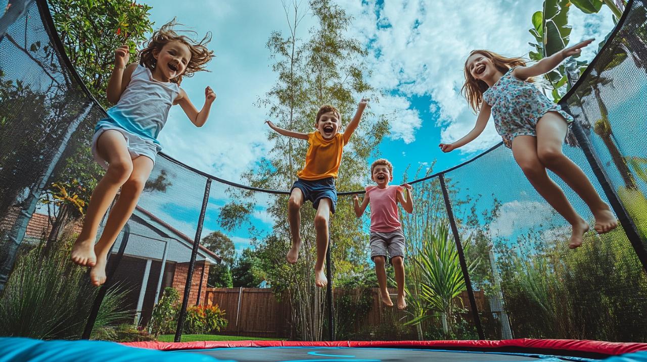 La seguridad es, sin duda, el aspecto más crítico cuando se trata de equipos recreativos para niños, y France Trampoline ha desarrollado un sistema de protección integral en su modelo Mi Primer Trampolín. La red de protección perimetral envuelve completamente la zona de salto, alcanzando una altura que supera generalmente los 150 centímetros, suficiente para evitar que los niños salgan despedidos fuera del trampolín durante el uso. Esta red está fabricada con fibras de polietileno de alta densidad, resistentes a la tracción y a la intemperie, lo que asegura que mantenga su integridad estructural incluso tras exposiciones prolongadas al sol y a la lluvia.
